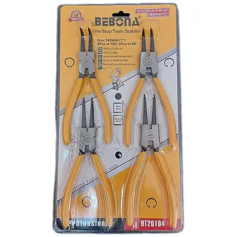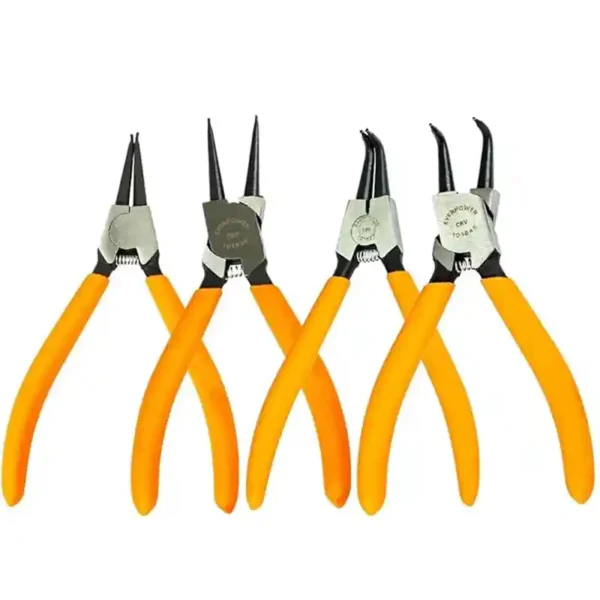 This set of internal and external snap ring/C-clip pliers features precision tips, designed for easy access to tight spaces and precise grip on small snaps. Ideal for mechanical, automotive, and professional workshop work.