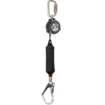 Compact self-retracting fall arrester with automatic locking system, durable housing, and energy absorber for reliable height safety.