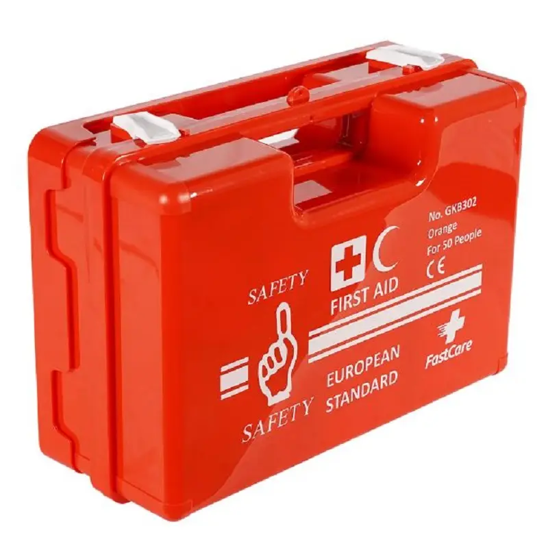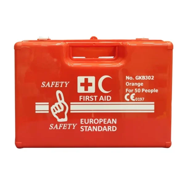 Orange European-standard first aid kit for 50 people, built with a sturdy hard case for organized and quick emergency response