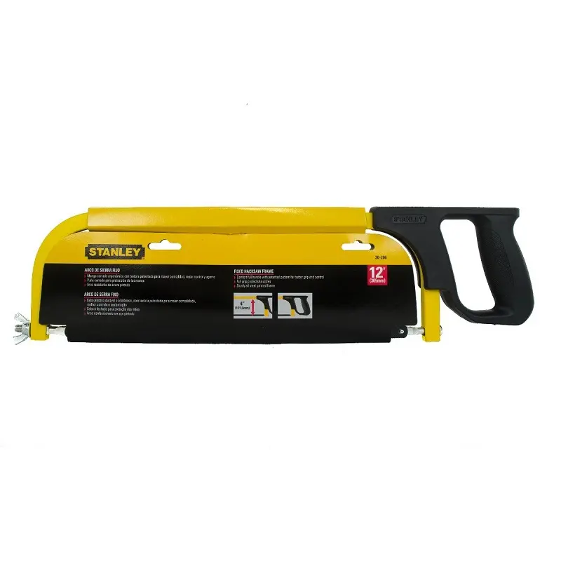 The E-20206 Fixed Hacksaw Frame is a sturdy and reliable tool designed for clean, accurate cutting of metal, plastic, and other materials. Built with a rigid frame for stability, it holds the blade firmly in place to ensure straight cuts and reduced vibration. The comfortable handle provides good control, making it suitable for both professional and general workshop use.