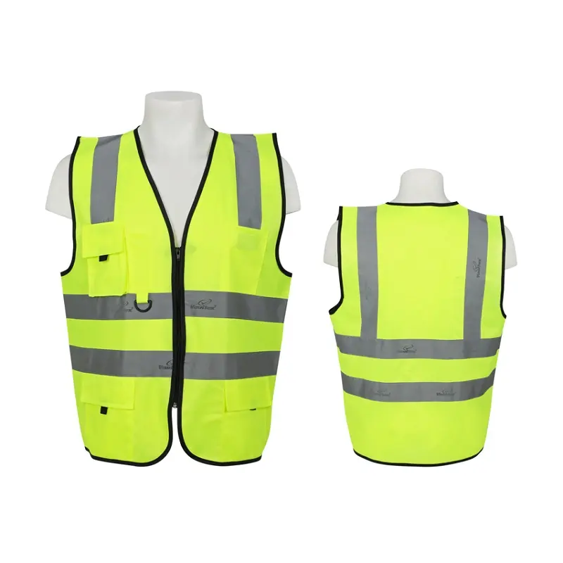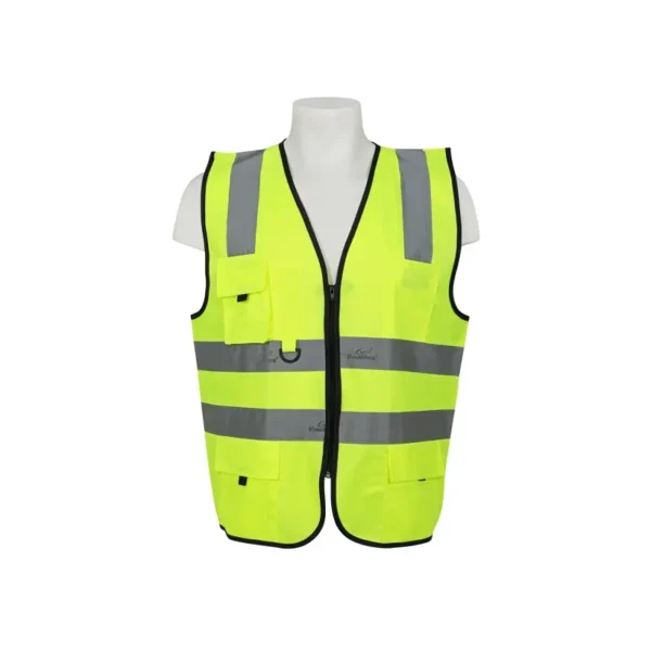 High-visibility executive fabric safety vest with zip closure, 5 pockets and reflective stripes for maximum day & night visibility