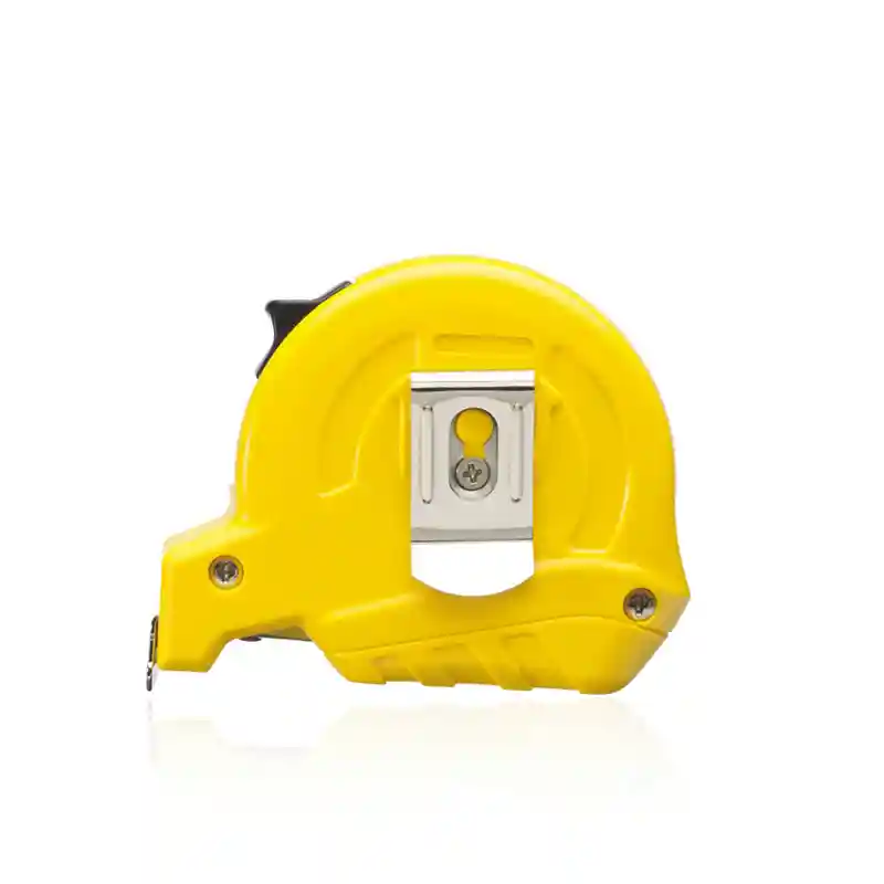 Steel measuring tape with clear yellow markings, offering accurate measurements and a practical design for everyday and professional use.