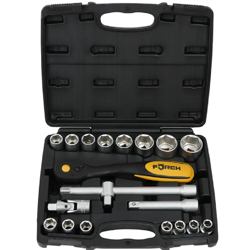 This socket wrench set is a practical and reliable solution for everyday mechanical, maintenance, and repair tasks. It includes a sturdy ratchet handle, a selection of commonly used sockets, and extension bars, all neatly organized in a durable plastic carry case. Designed for efficiency and comfort, the set allows easy tightening and loosening of fasteners in automotive, workshop, and household applications.