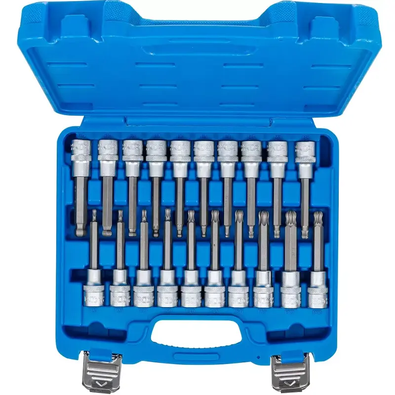 This 30-piece Torx socket and bit set is designed for precision fastening in automotive, mechanical, and industrial applications. It includes a practical range of Torx bits and sockets to handle internal Torx fasteners commonly found in vehicles, machinery, and equipment. Made from durable steel and neatly organized, this set ensures strength, accuracy, and long service life.