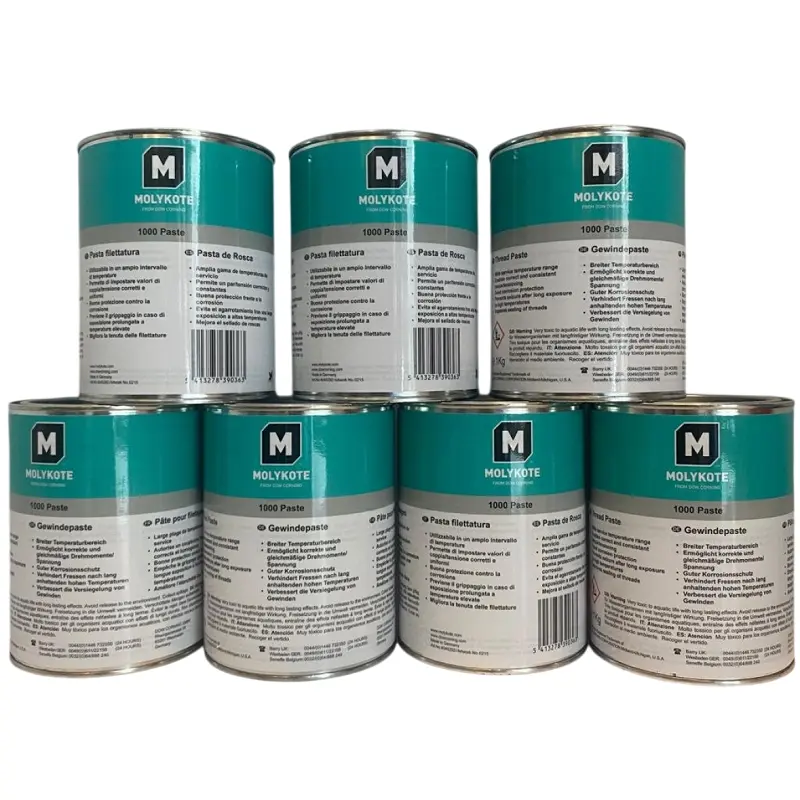 MOLYKOTE® 1000 Paste is a high-performance anti-seize and assembly paste designed to protect metal components exposed to high loads and extreme temperatures. It reduces friction during assembly, ensures consistent tightening torque, and prevents galling, seizing, and corrosion of threaded connections. The paste forms a durable lubricating film that remains effective even under severe operating conditions.