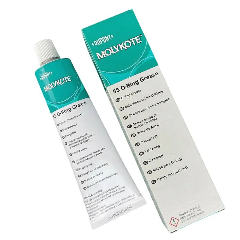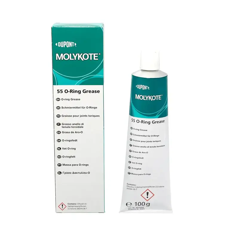MOLYKOTE® 55 O-Ring Grease is a silicone-based lubricating grease specially formulated for the lubrication and protection of O-rings and rubber sealing elements. It reduces friction during assembly and operation, prevents sticking and tearing, and helps extend seal life. The grease offers excellent compatibility with many elastomers and provides reliable performance over a wide temperature range, making it ideal for sealing applications exposed to moisture and pressure.
