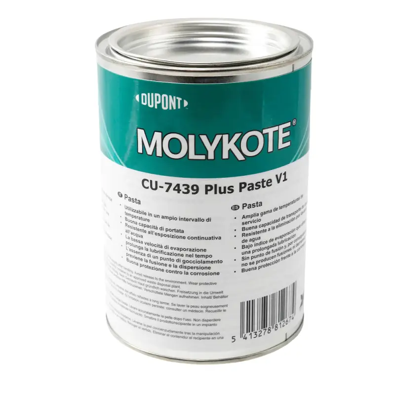 MOLYKOTE® CU-7439 Plus Paste V1 is a copper-based anti-seize and assembly paste designed to protect metal components exposed to high temperatures, heavy loads, and corrosive environments. It prevents seizing, galling, and cold welding of threaded and fitted parts while reducing friction during assembly and disassembly. The paste forms a durable protective layer that ensures reliable performance and long-term component protection.
