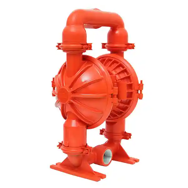 The Wilden Pro-Flo P8 series 2-inch double diaphragm air-operated pump is designed for reliable performance and long service life in various industrial applications. Its clamped design simplifies maintenance and reduces downtime. The pump is self-priming and can run dry without damage, making it suitable for shear-sensitive fluids. Fluid contact parts are made of aluminum with NPT connections and can withstand a wide range of operating temperatures and pressures.