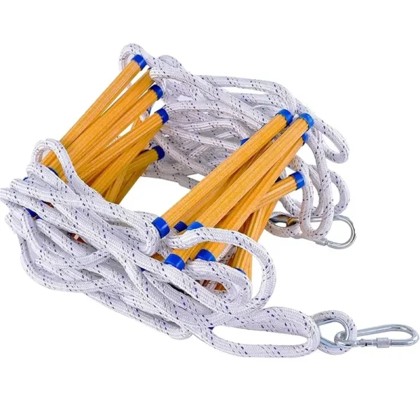 Portable rescue ladder with strong rope sides and rigid anti-slip rungs, ideal for emergency rescue and evacuation use.