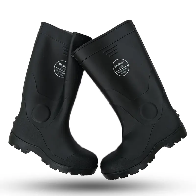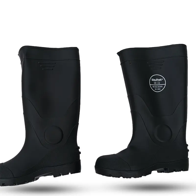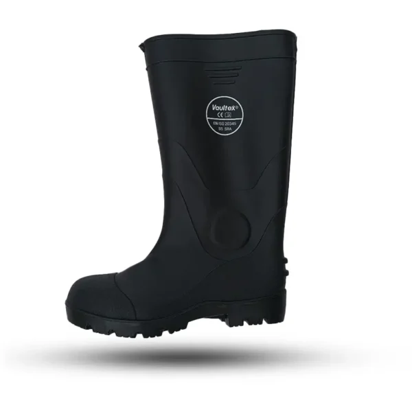 The Vaultex RBT rain boot is designed to provide maximum protection and comfort in wet and industrial environments. It’s constructed from high-quality PVC using machine molding technology for durability and abrasion resistance. It features a steel toe for impact protection and an oil- and slip-resistant sole for enhanced stability and safety on the job. The shock-absorbing heel provides added comfort during extended wear.