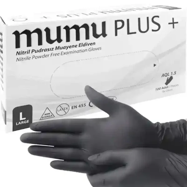 Mumu Plus Black Nitrile Gloves are powder-free, flexible, and latex-free, providing reliable protection and helping reduce the risk of infection and cross-contamination.