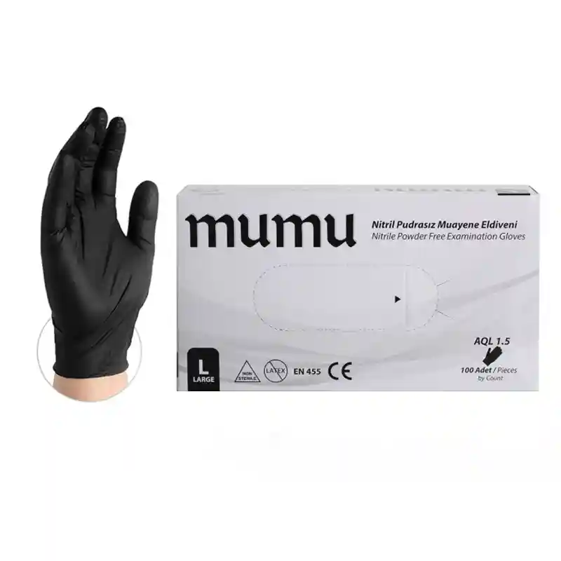 Mumu Plus Black Nitrile Gloves are powder-free, strong, and flexible, designed for individuals with latex allergies. This ideal choice for various medical applications makes them perfect for medical examinations and diagnoses.