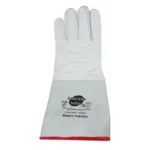 Miller’s ARGON-GL-SH short welding gloves, crafted from genuine leather, are designed for maximum comfort and control during work. Made from high-quality, soft goatskin leather, they offer a comfortable feel and exceptional softness, and feature a rounded thumb for excellent abrasion resistance and ease of movement. The gloves have elegant white stitching and a gathered elastic band at the back for easy on and off. They are durable, tear-resistant, and high-performance for demanding applications.
