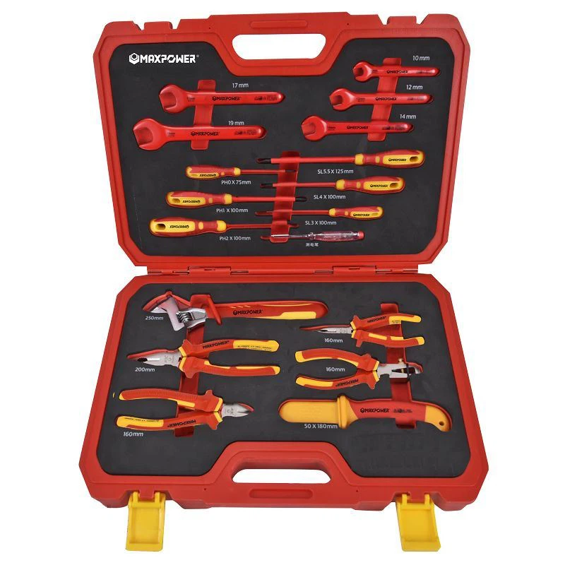 • Includes insulated screwdrivers, pliers, cutters, adjustable wrench, and spanners.