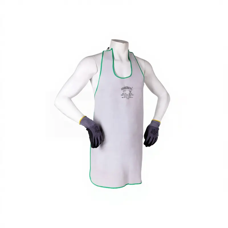 • Logo/Marking: The front of the apron shows manufacturer information — “ARMSTRONG” brand and safety certification markings.
