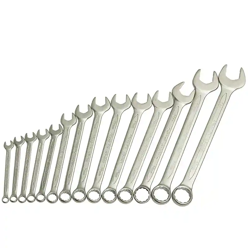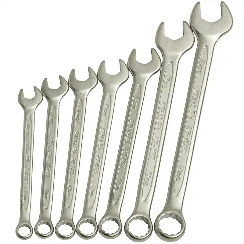 The STANLEY 14-piece double-ended wrench set, model STMT80944-8, covers sizes from 8 mm to 32 mm. Designed for high strength and precision in loosening and tightening hex nuts, it’s ideal for heavy-duty mechanical and professional applications.